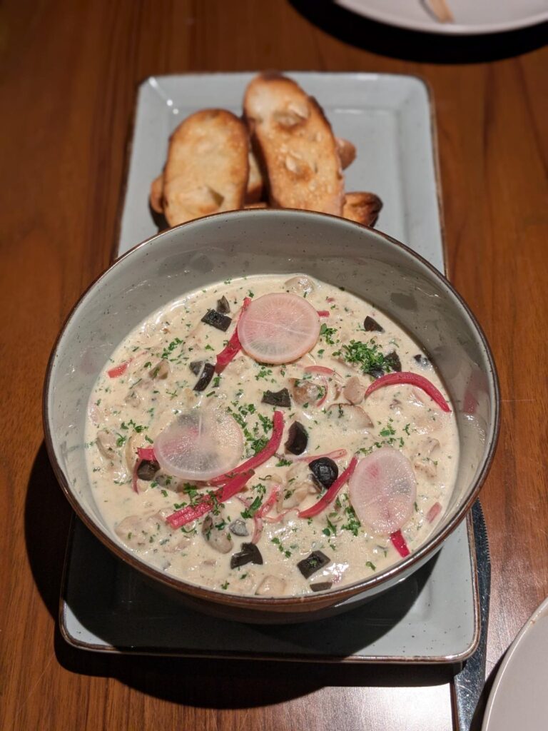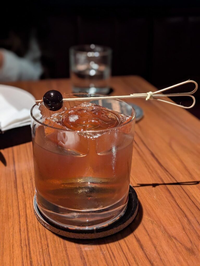 An Umami Old Fashioned is what I began with. The ingredients were a mouthful – Jim Beam ,Vermouth, Amaro, Cherry Brine, Brown Koji Boy Cacao Miso, Bitters – but thankfully, those many cooks didn’t spoil the broth. I’d rate it high amongst the OFs I’ve had.