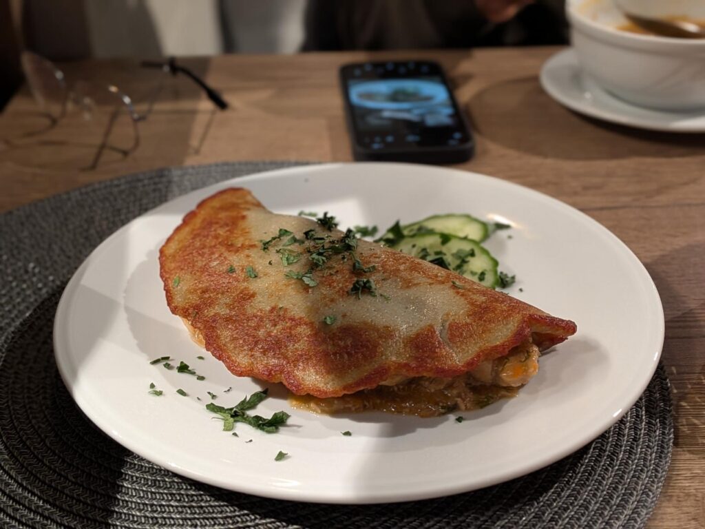The chicken and mushroom pancake was proof that the flavours were even more subtle.