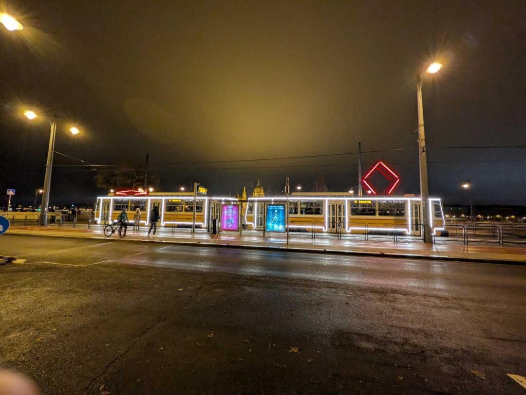 A very pretty Christmas-y tram that we kept seeing around. Almost like sprinkles on a donut.